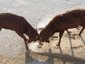 鳥居も久々に見ると、なんかよく、干潮で人が沢山歩いている横で、鹿が喧嘩をしてます、角が無いのが、いいんだか悪いんだか、決着がつかずドロー!