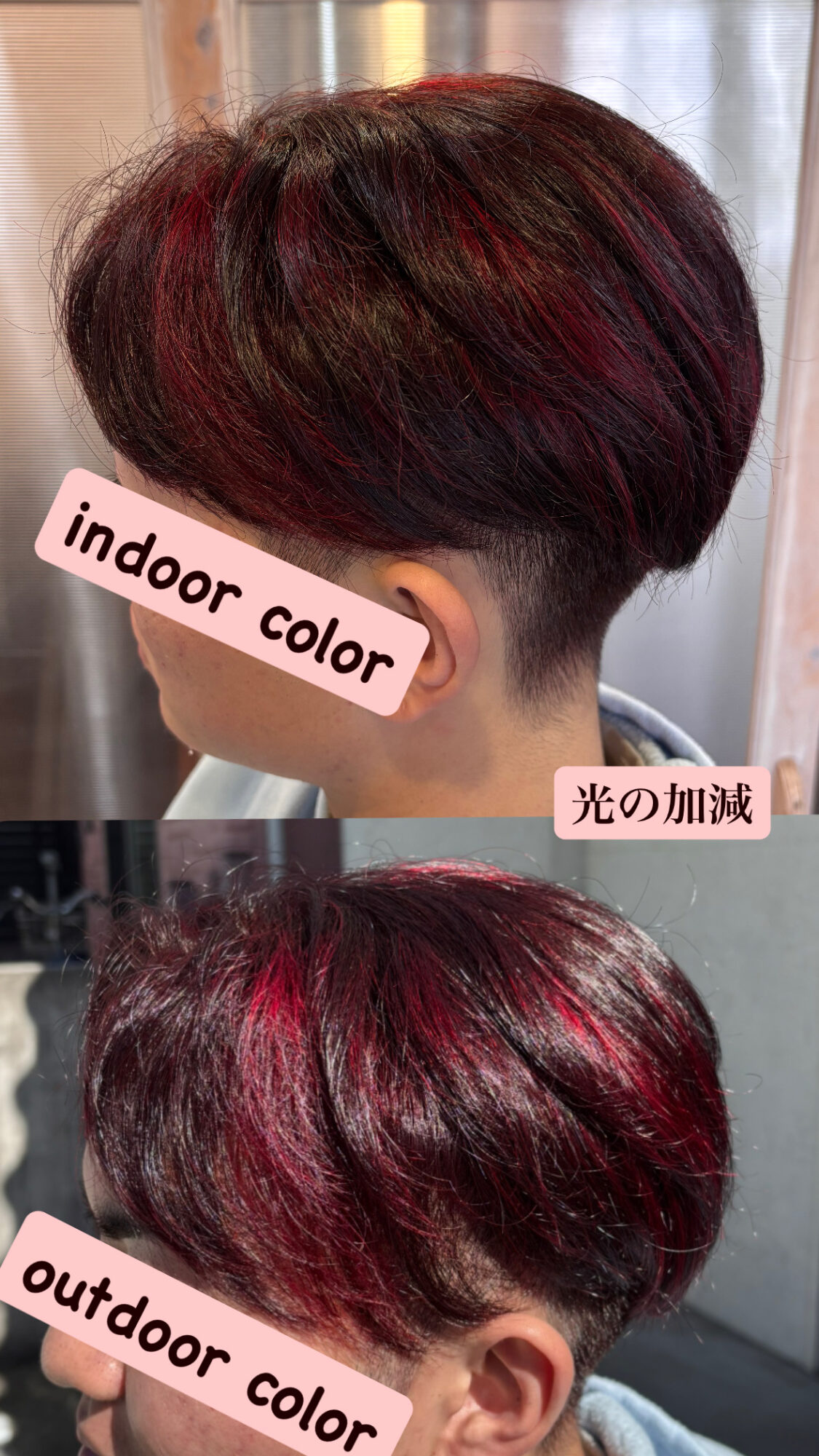 塩基性カラーとボルドーカラーを使い